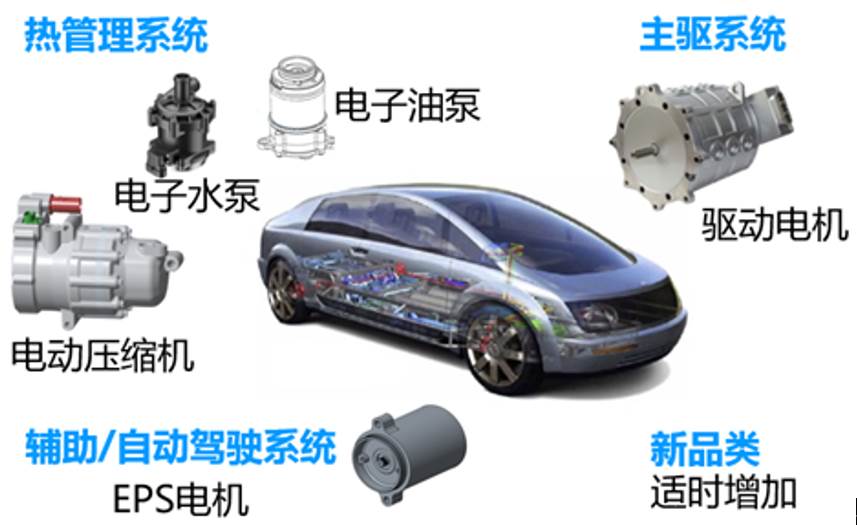 沖破過去半個多世紀的“燃效”時代,2021年被定為“電效”的元年。無論長期的汽車電驅化,還是中短期的汽車混合動力化,包括電子水泵、EPS電機、輕混48V電機、電動空調壓縮機、電動坐椅調節等在內都是電機化的。核心機電部件像人體的心臟一樣,是機器的靈魂與動力源。