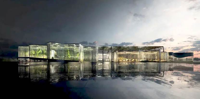 溫室花園是上海世博文化公園核心功能建筑,位于整個公園的“黃金C位”。復古的老工業(yè)風鋼鐵車間和炫目的未來感玻璃溫室合二為一,建成后將成為上海中心城區(qū)新地標。溫室公園的建筑面積約2-3萬㎡,體積約34萬m3,從西向東分別設置中部游客服務中心、多肉世界館、熱帶雨林館和云之花園館。