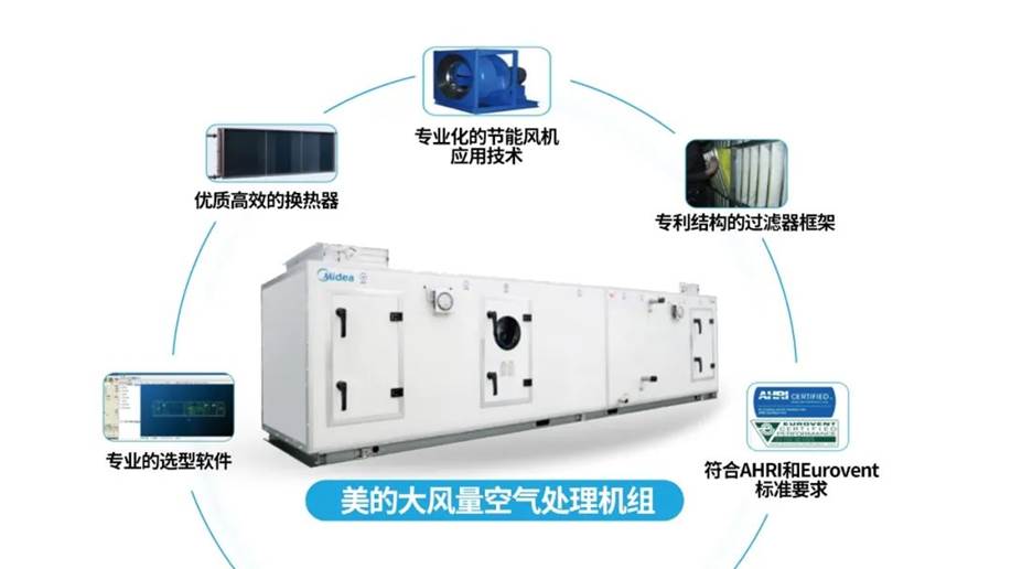 通風空調末端系統是保障機場航站樓室內環境的重要設施。為了保證空調末端送風舒適性和可靠性,阜陽機場新建航站樓末端采用美的大風量空氣處理機,具有剛度好、漏風率低、杜絕冷橋、噪聲低、節能效果好、智能化控制等優點。