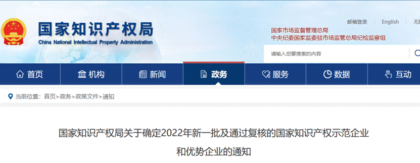 2022 年新確定的國家知識產權優勢企業名單:
