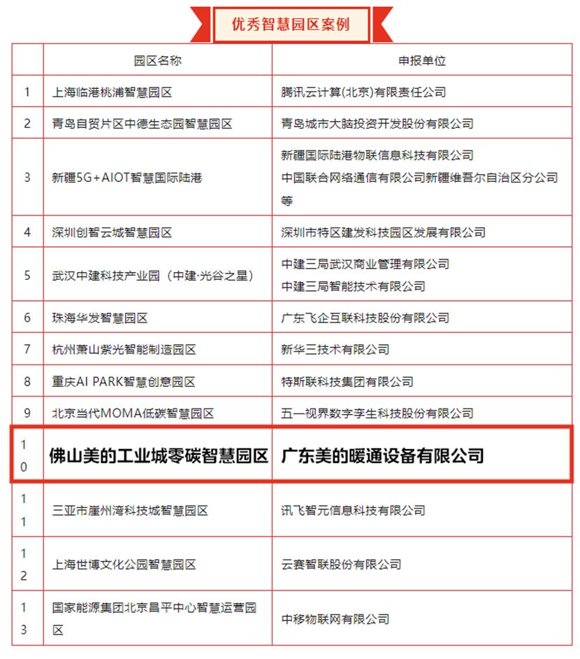 近日,由全國信標委智慧城市標準工作組智慧園區(qū)專題組牽頭組織的“2022年智慧園區(qū)優(yōu)秀案例評審會”順利召開,經(jīng)過11位專家的層層篩選,圍繞示范性、可拓展性、可持續(xù)性、經(jīng)濟性、創(chuàng)新性五個維度,共評選出優(yōu)秀智慧園區(qū)13個,潛力智慧園區(qū)4個。美的工業(yè)園西區(qū)(佛山美的工業(yè)城零碳智慧園區(qū))成功入選“2022年智慧園區(qū)優(yōu)秀案例”。