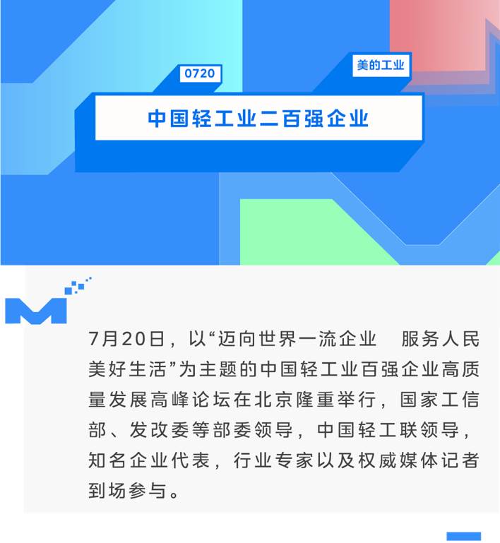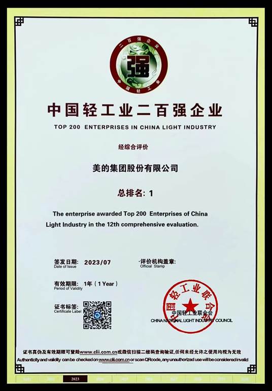 “中國輕工業二百強企業”在行業中具有極高權威性和廣泛影響力,是衡量中國輕工業企業發展活力的重要標準。作為輕工業的領航企業,美的憑借持續的科技創新、研發高投入以及高端專業人才引入,再一次獲得中國輕工聯的高度認可。