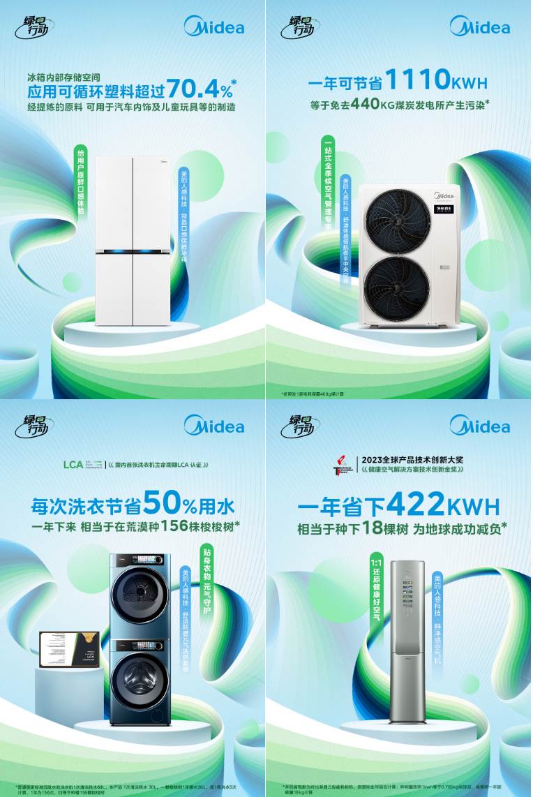 以美的人感科技?微晶口感保鮮冰箱為例,該系列產品內部存儲空間應用可循環塑料超過了70.4%;相較于同類產品,一臺美的人感科技?鮮凈感空氣機,一年使用時間可節電422kW·h,這相當于種下了18棵樹。