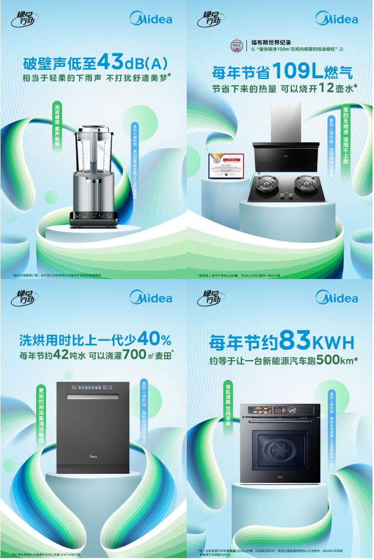 與此類似,一臺美的人感科技?知味觀嵌入式微蒸烤炸一體機,每年可節約83kW·h,約等于一臺新能源汽車500KM續航;而美的人感科技?舒適膚感元氣洗烘套系,每次使用可節水50%;還有每年可節省109L燃氣的美的人感科技?無煙感煙灶套裝、洗烘用時比上一代減少40%的美的人感科技?晶焰即速感洗碗機等等大量的產品,成為用戶在每個生活場景、每個智能情境中的產品更新換代的選擇。