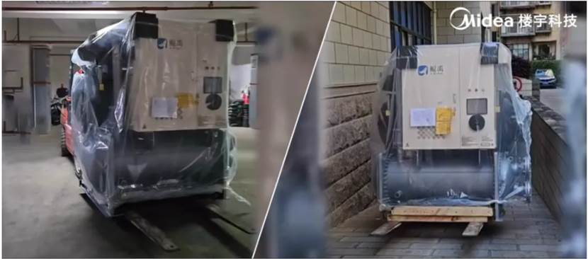 威龍飯店的制冷機房位于大樓的負二層,無設備運輸通道,對設備能效及尺寸要求極高。考慮到機房位置的特殊性,美的鯤禹模塊化磁懸浮離心機,創新模塊化設計,結構緊湊,體積小巧,占地面積小,完美匹配場地大小;另外,左右管板設計有叉車孔,不需要專門的起重機和其他設備,現場可用叉車運輸及吊桿從樓梯間調運,突破原本的空間限制,輕松完成設備的運輸和安裝。此外,工廠快速生產到貨與安裝運行,大大縮短了施工周期,得到了安裝單位及酒店一致好評。