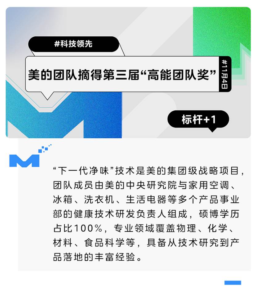 “下一代凈味”技術是美的集團級戰略項目,團隊成員由美的中央研究院與家用空調、冰箱、洗衣機、生活電器等多個產品事業部的健康技術研發負責人組成,碩博學歷占比100%,專業領域覆蓋物理、化學、材料、食品科學等,具備從技術研究到產品落地的豐富經驗。