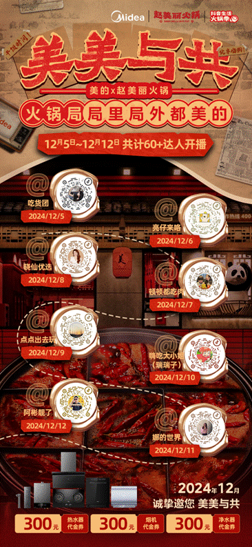 此次,美的廚熱與趙美麗火鍋跨界合作,雙方基于廚電產品與飲食生活的強關聯,積極開展線上線下營銷活動,從跨界短視頻話題引發網絡關注,到抖音藍V直播互動、達人探店引爆熱度,再到雙方聯合打造線下主題門店,以場景化多維營銷撬動巨大流量,促成銷售轉化及UGC內容創意二次傳播,形成營銷閉環,實現流量和銷量的雙豐收,成為家電圈又一經典營銷案例。