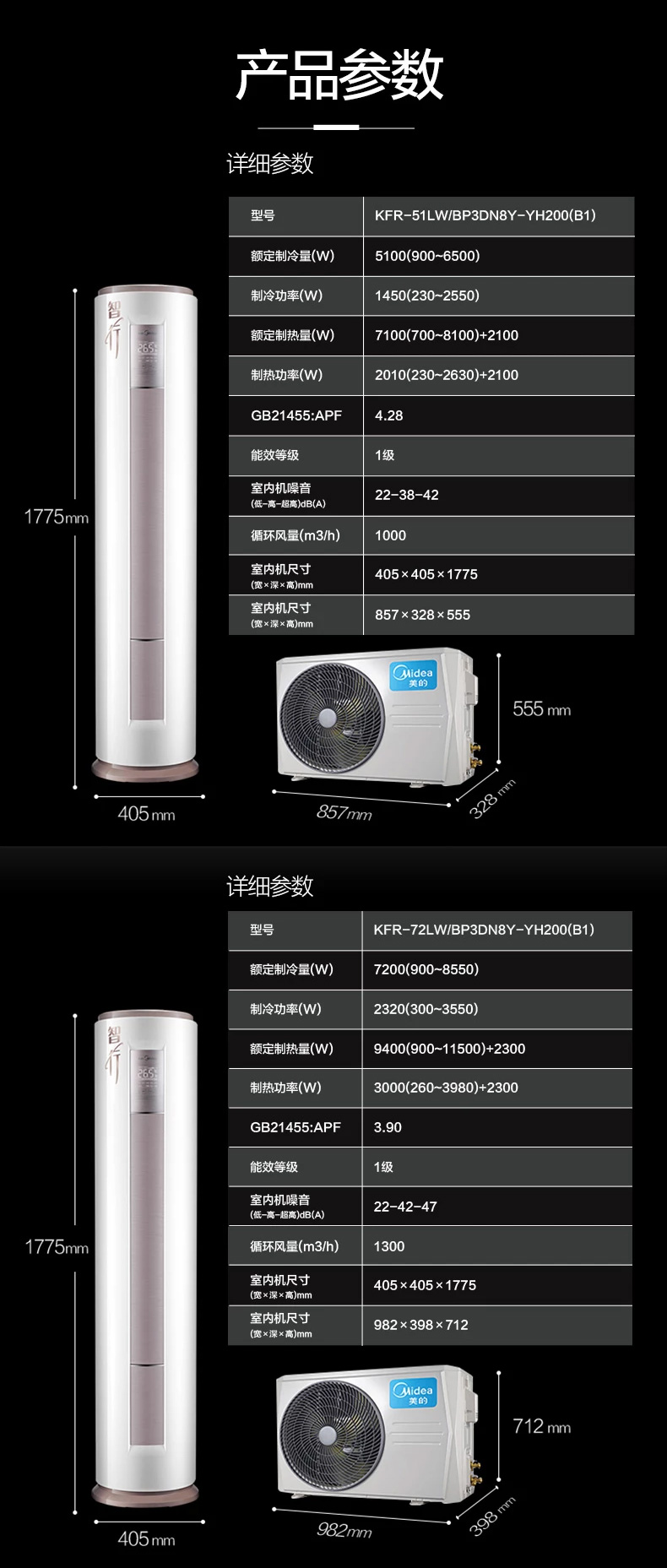 室外機(jī)外形尺寸(高)(單位:mm) 712