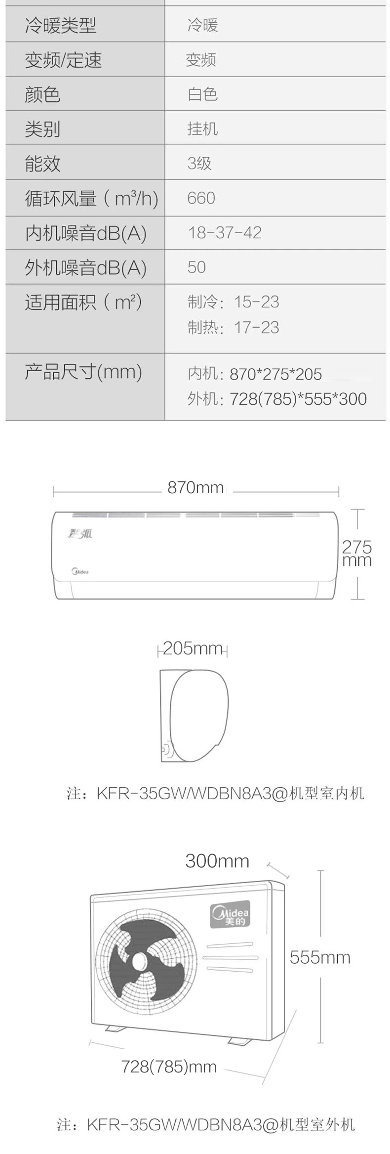 室外機外形尺寸(寬/含閥體)(單位:mm) 785