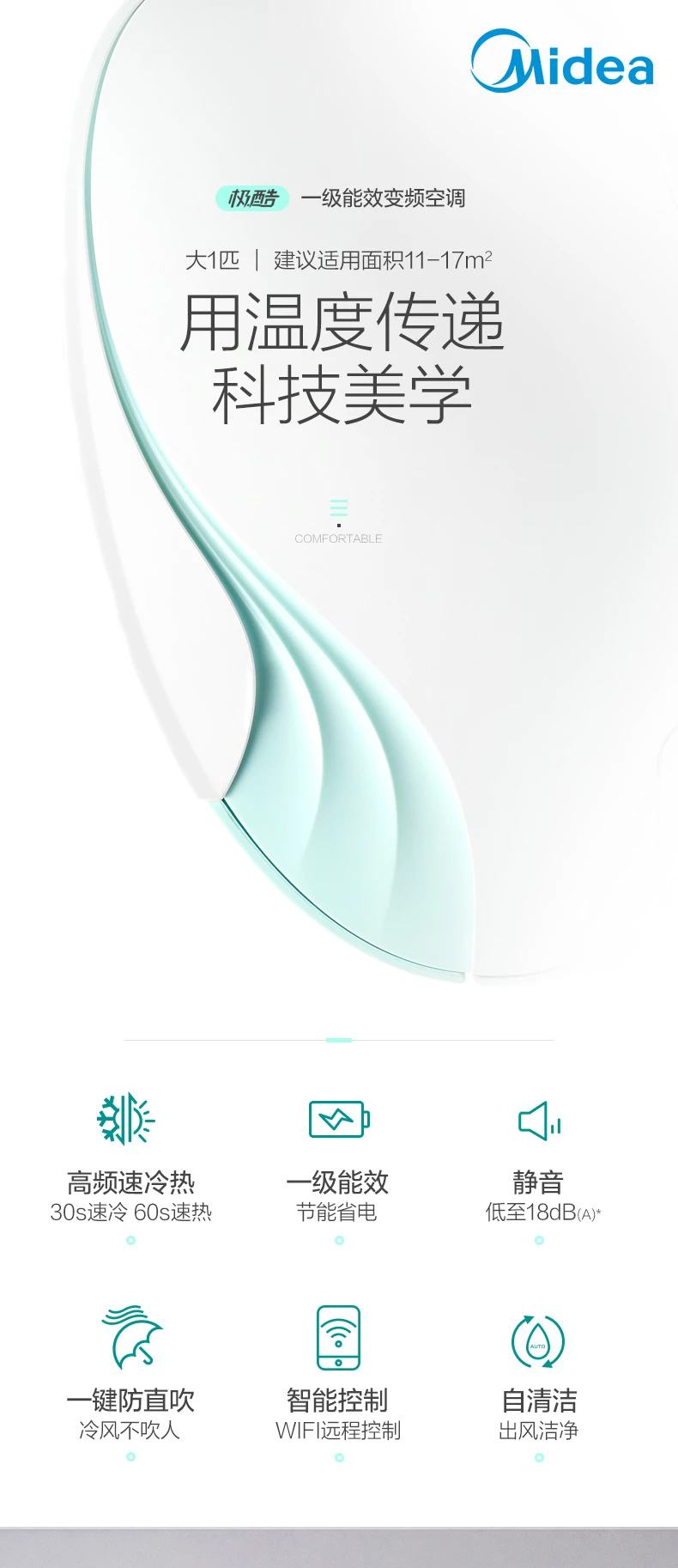 河南美的MIDEA大1.5匹智能手機(jī)遙控一級能效變頻家用冷暖 一鍵防直吹 KFR-35GW/BP3DN8Y-TP200 0