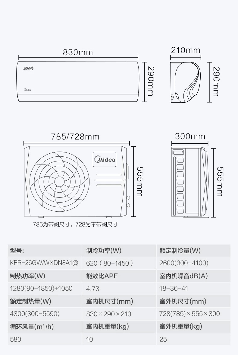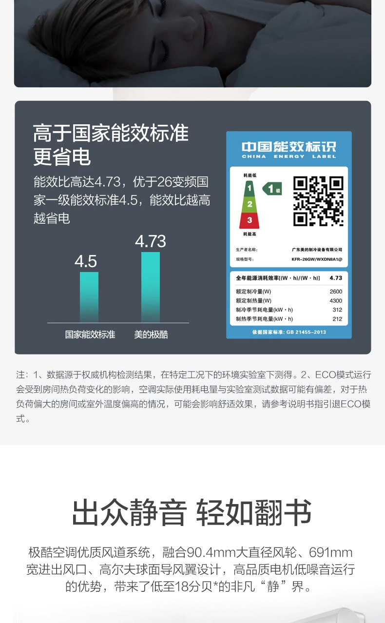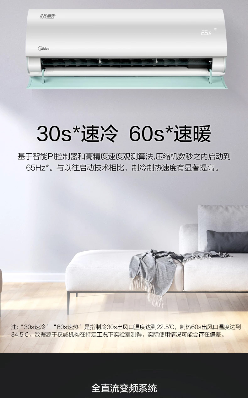MIDEA 美的小鯨鯊新三級能效智能家電 大1匹變頻冷暖 空調(diào)掛機(jī) KFR-26GW/N8XJA3 0