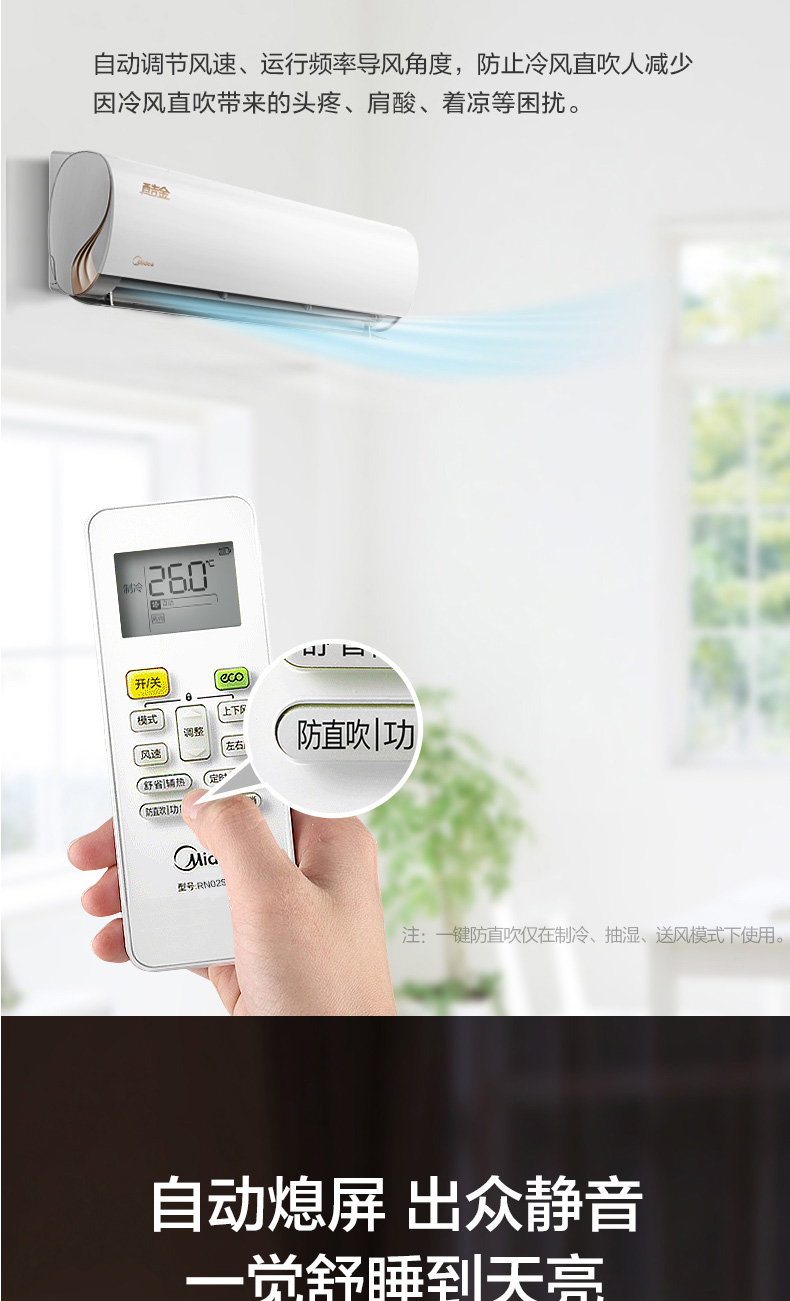 包裝清單: 遙控器*1件、7號電池*2節、連接管*1套、包扎帶*1卷、密封膠泥*200克、排水管*1根、墻孔擋板*1件、安裝板*1件、自攻螺釘*5顆、塑料脹管*5個、排水接頭*1個、排水接頭密封圈*1個、使用安裝說明書*1本、保溫管*1件、連接管防拆帽*2個、室外機1臺、室內機1臺