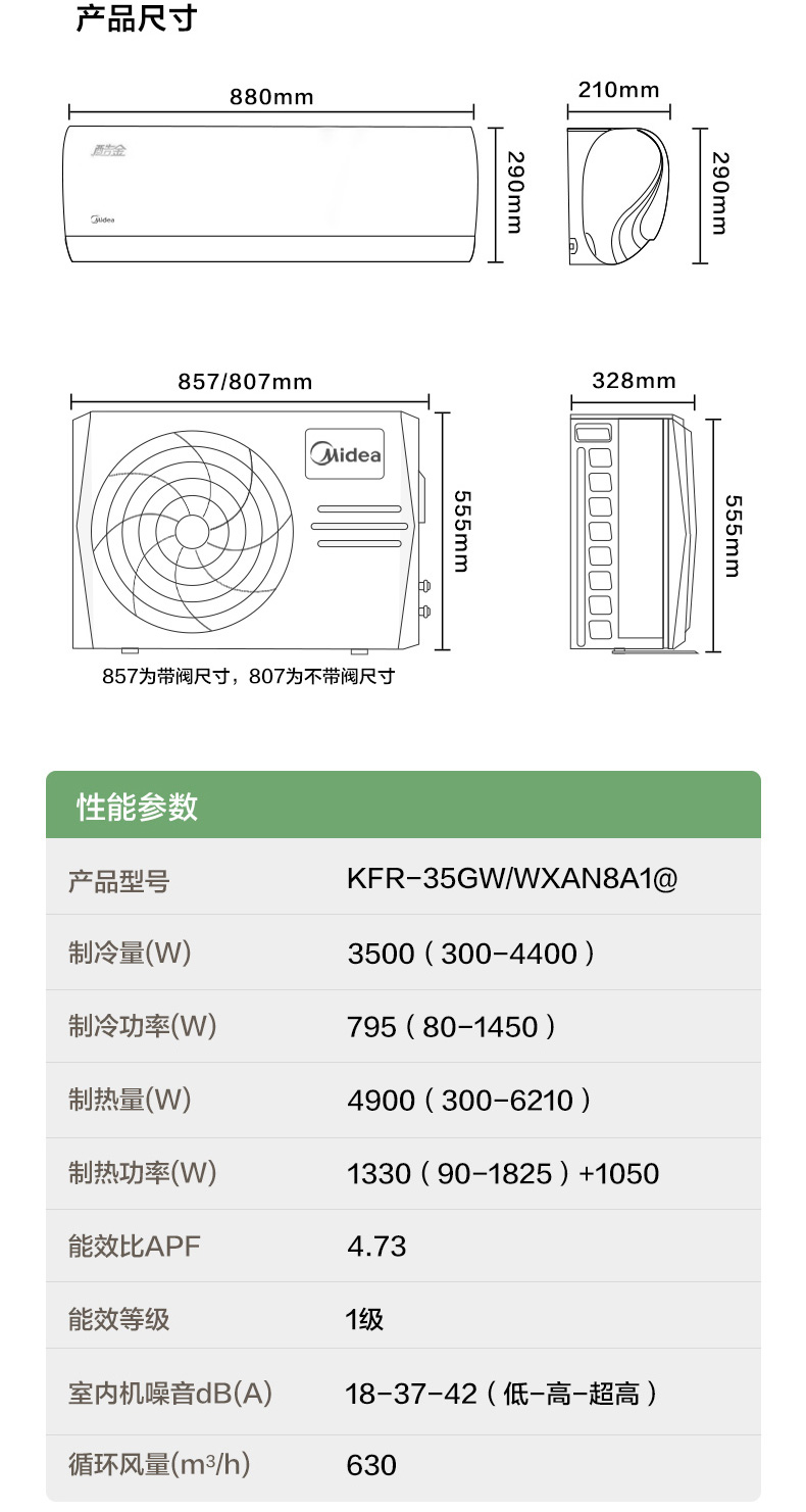 室外機外形尺寸(寬/含閥體)(單位:mm) 857