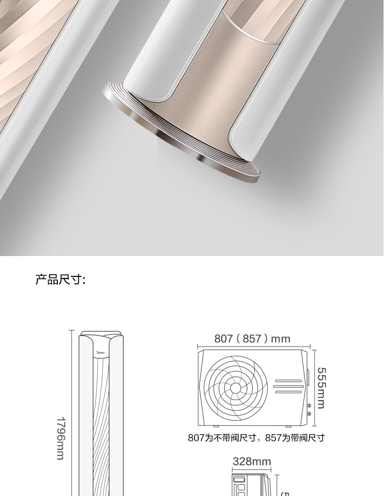 室外機外形尺寸(寬/含閥體)(單位:mm) 857