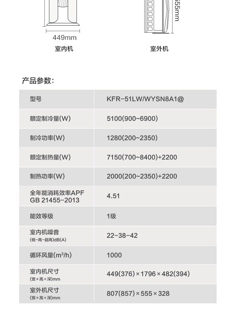 首頁 / 空調大2匹 一級能效變頻冷暖 智能無風感 KFR-51LW/WYSN8A1@