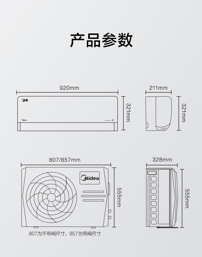 室外機(jī)外形尺寸(寬/含閥體)(單位:mm) 857