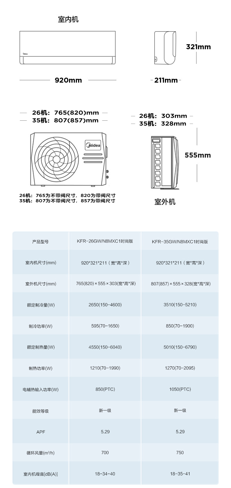 室外機外形尺寸(寬)(單位:mm) 765